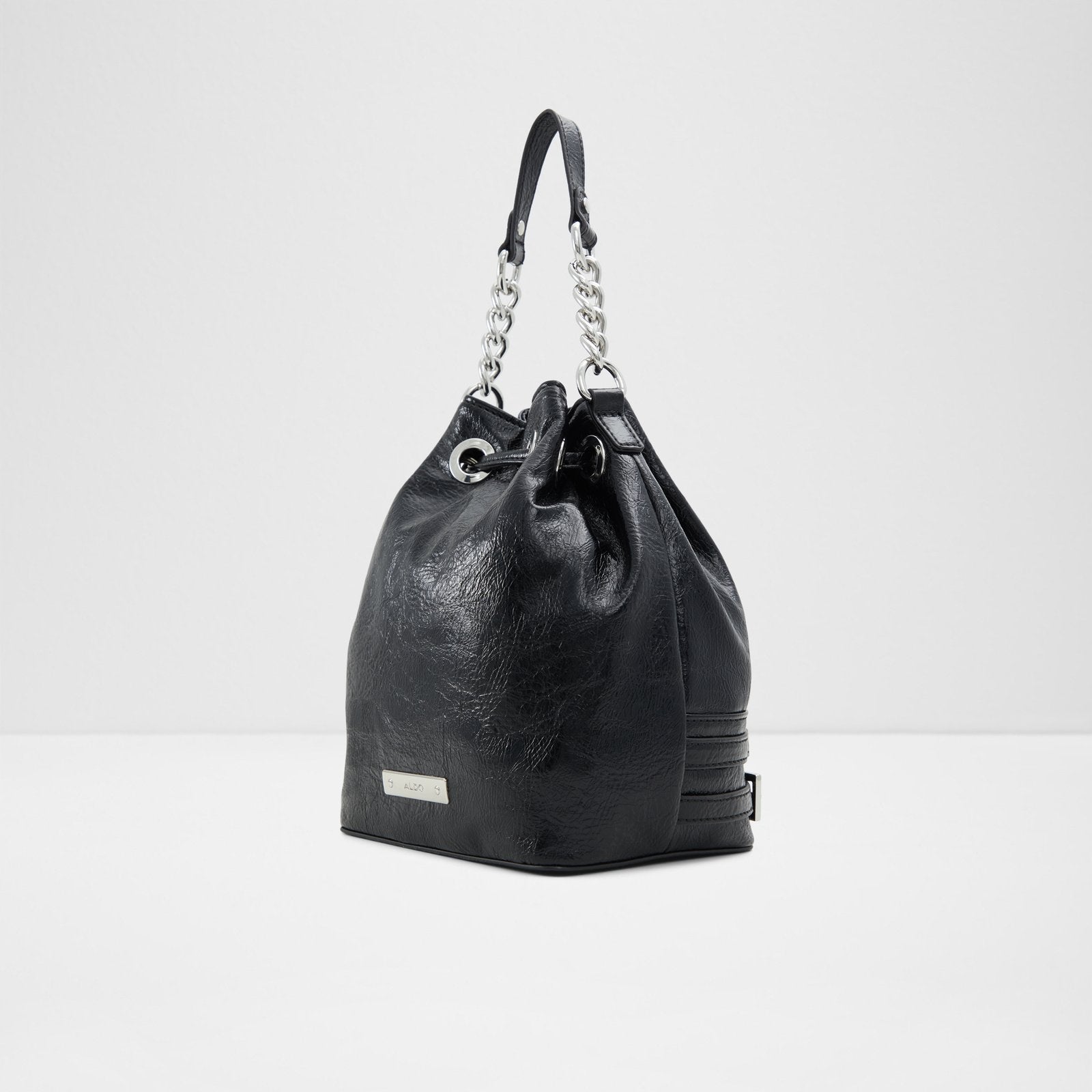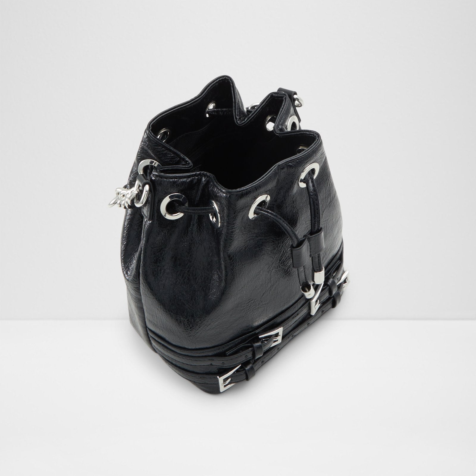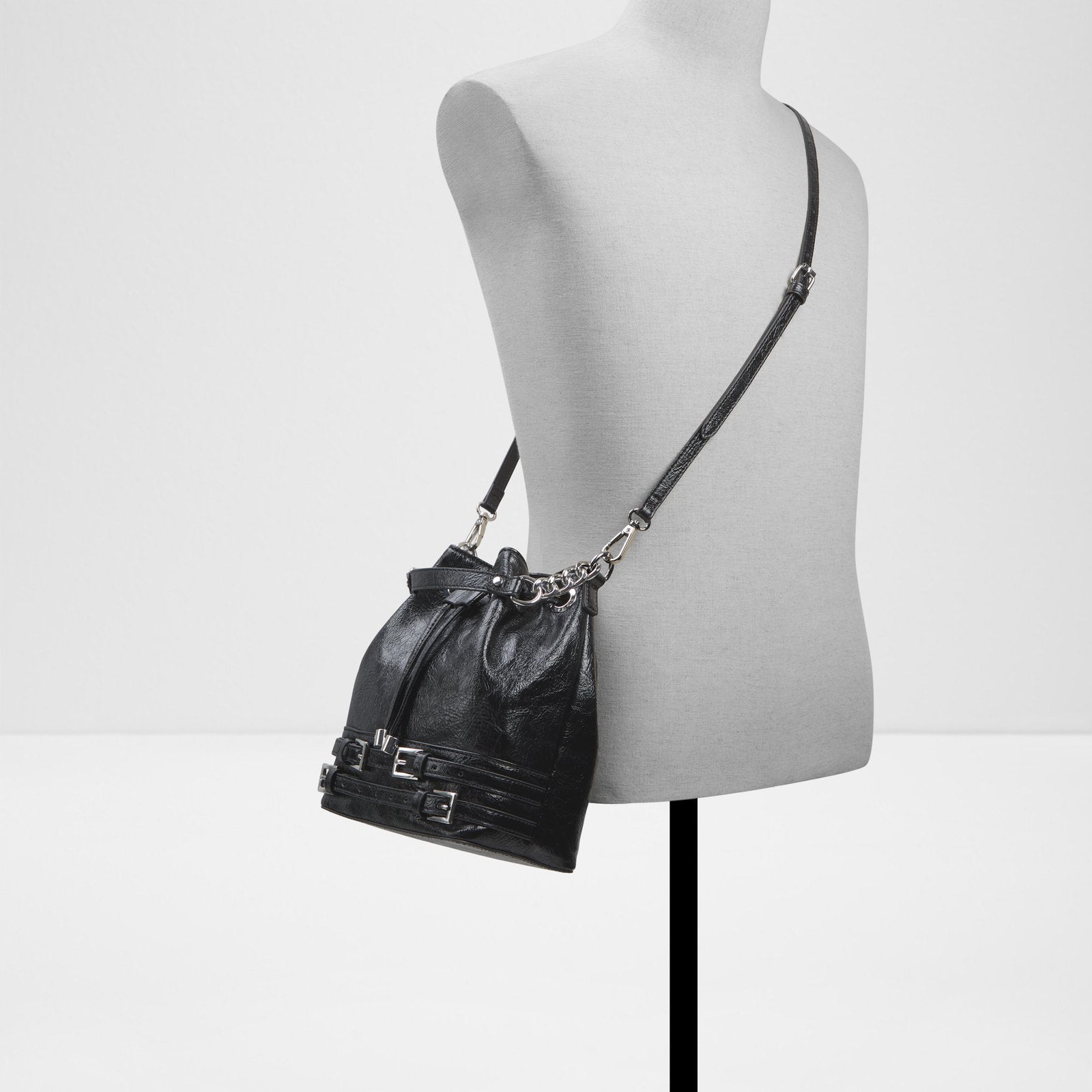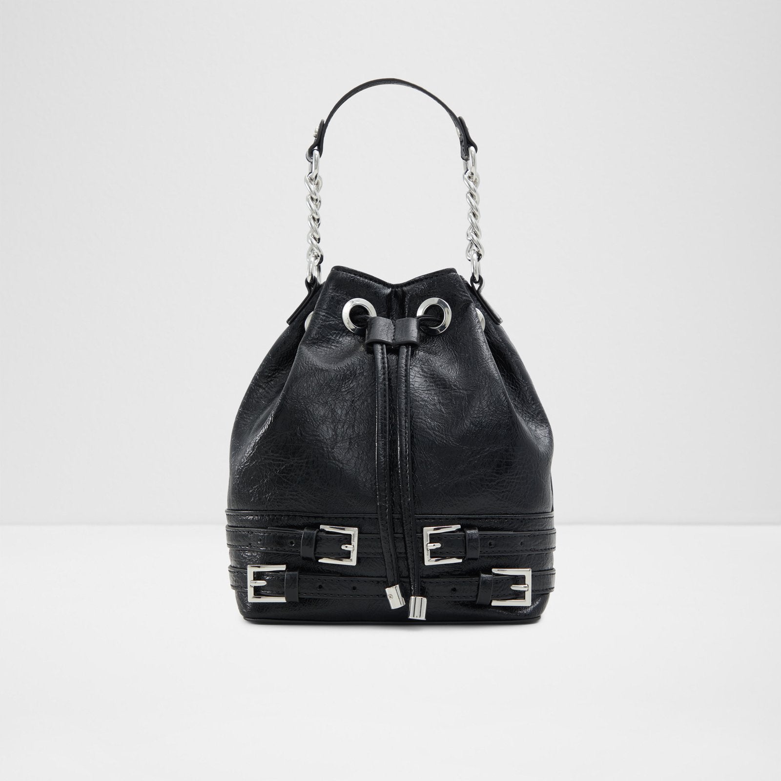 How fun is this bucket bag? Buckle details and silver hardware meet to make a special party bag with a lived in, distressed finish.