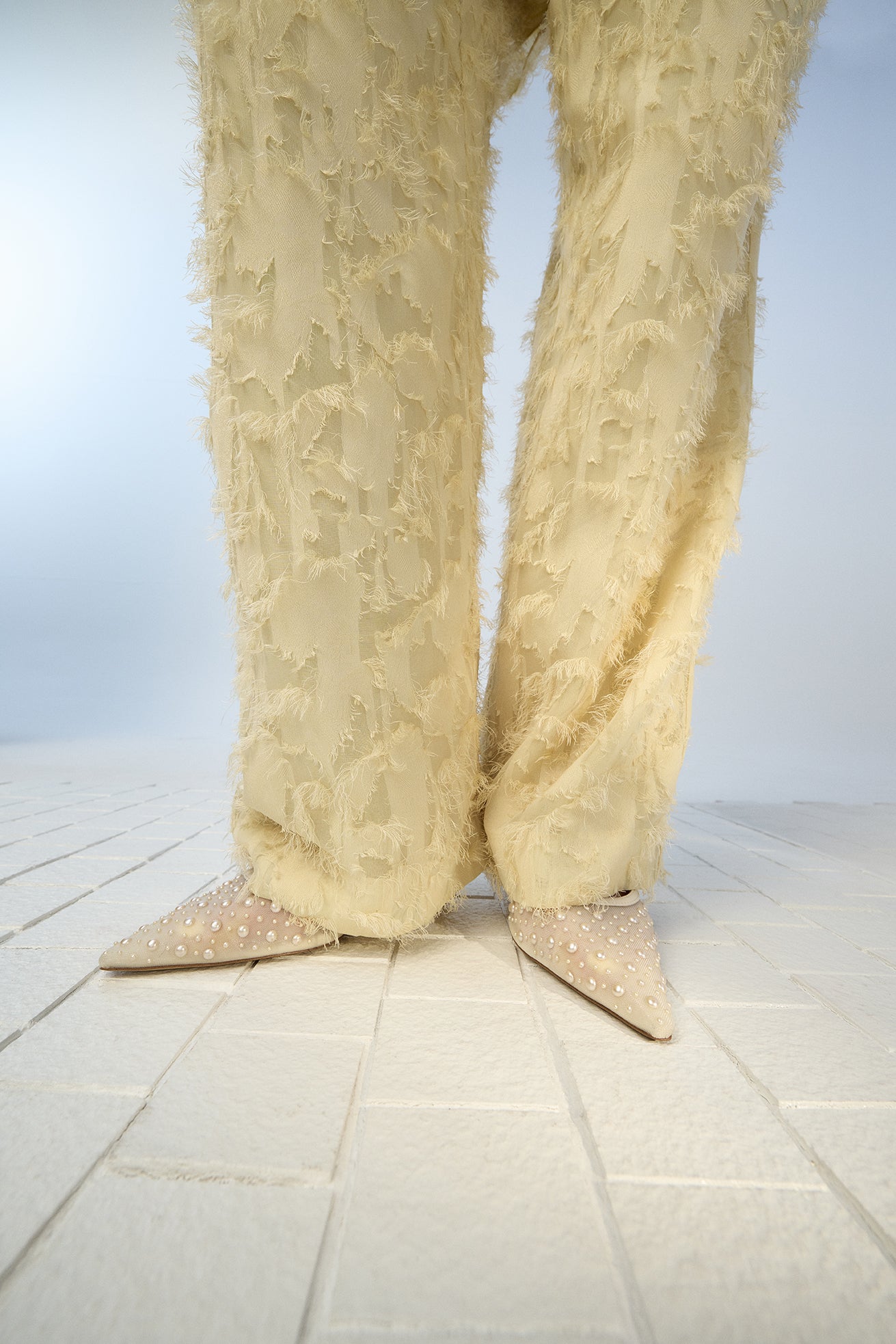 Feel supremely graceful on your special day while sporting these stunning mesh slingbacks, lovingly dotted with shiny white pearls.