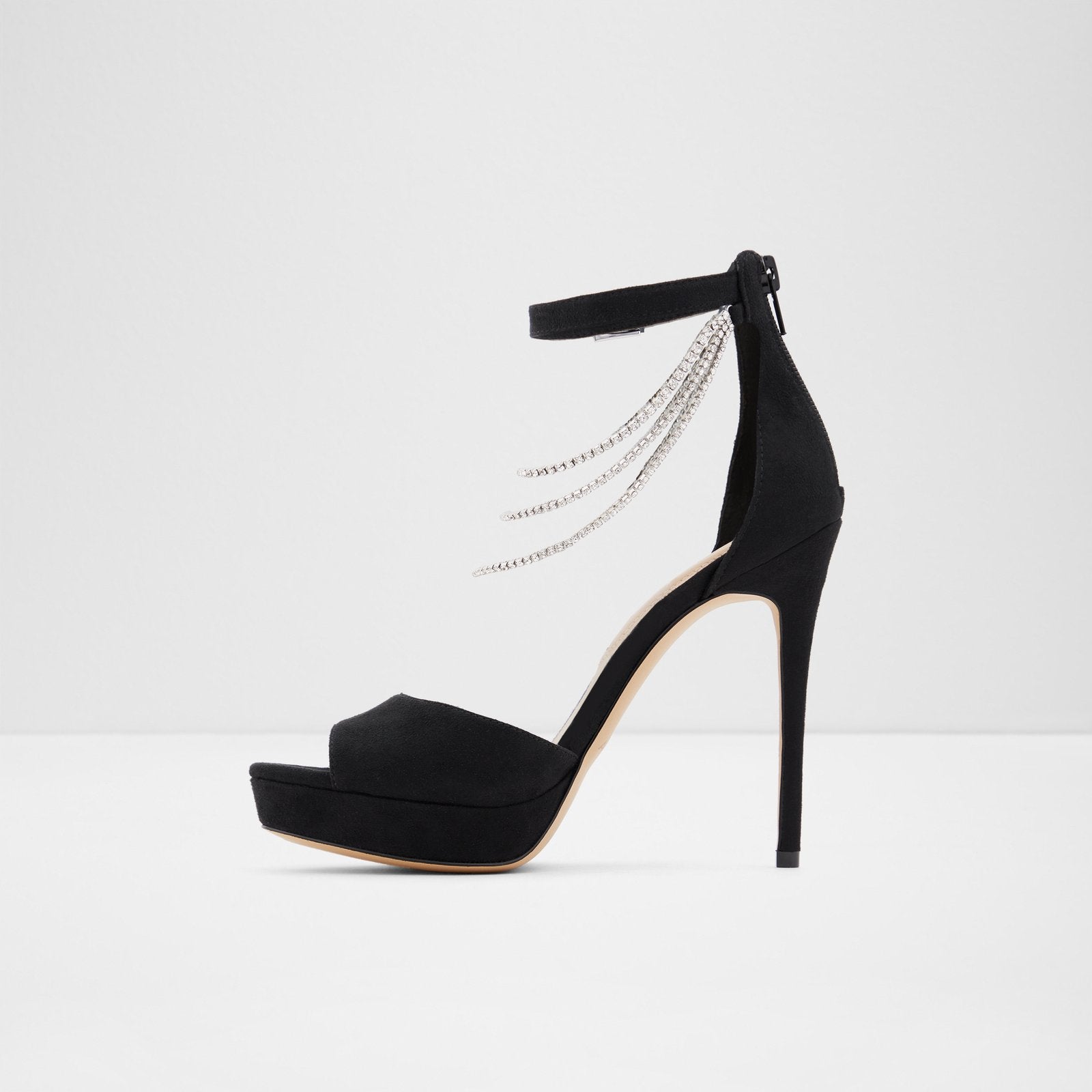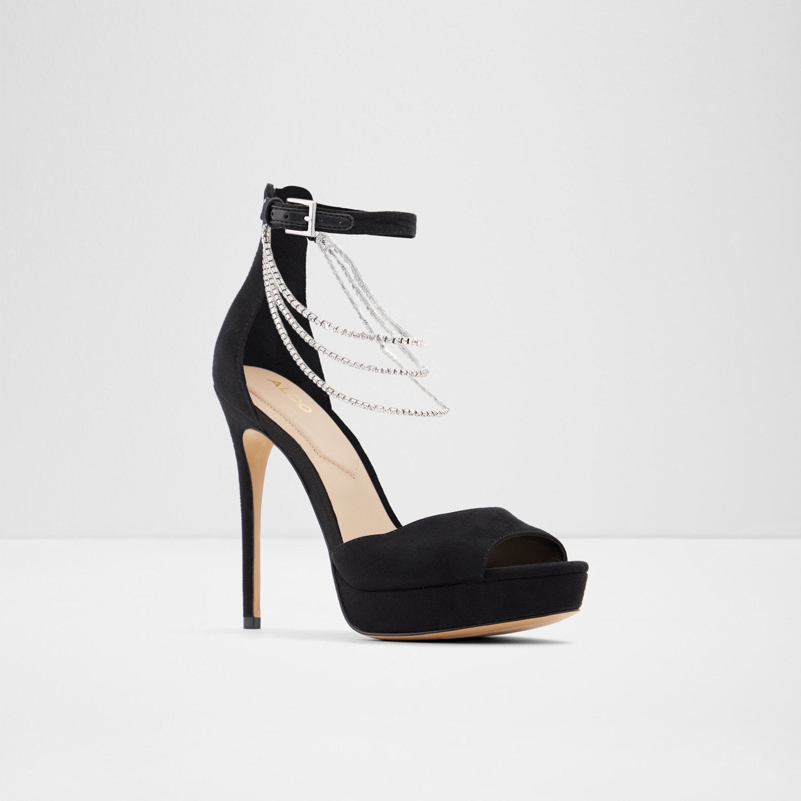 As the platform rendition of her little sister court single-sole sandal "Bling", we show that jewellry should be worn head to toe. Multiple strands of rhinestones drape the ankle with eye-catching glamour.
