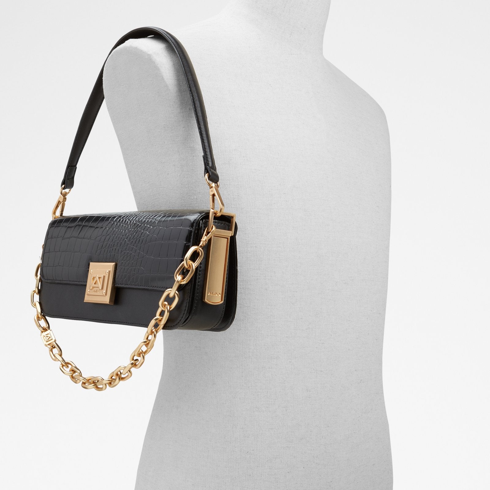 This daring shoulder bag with decorative chain detail is all you need to show up in style.