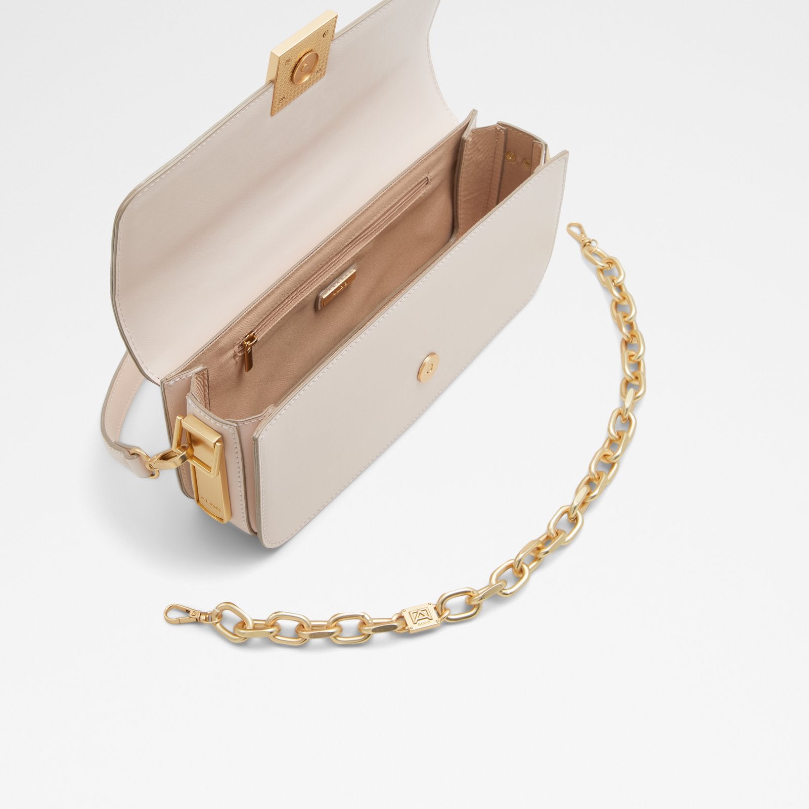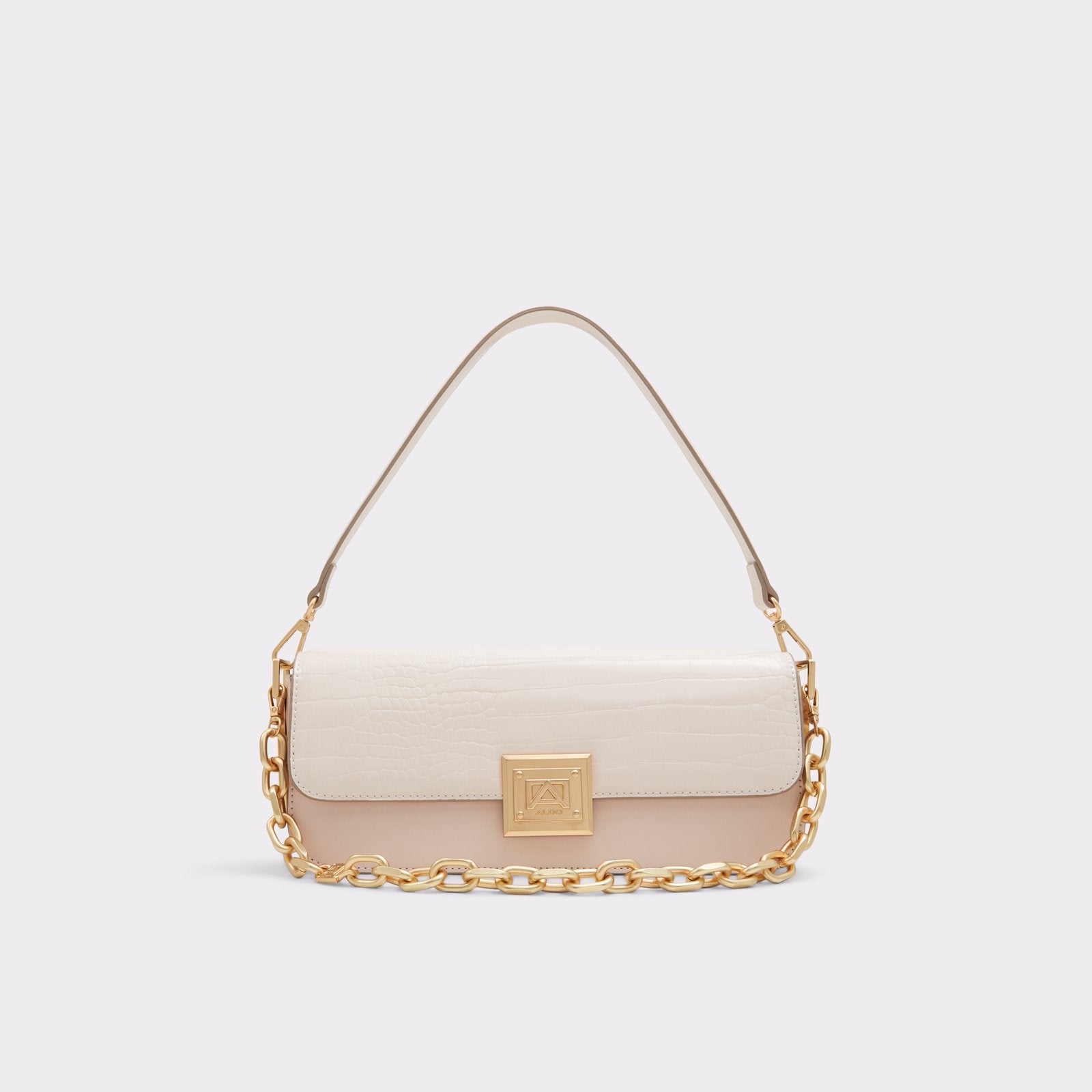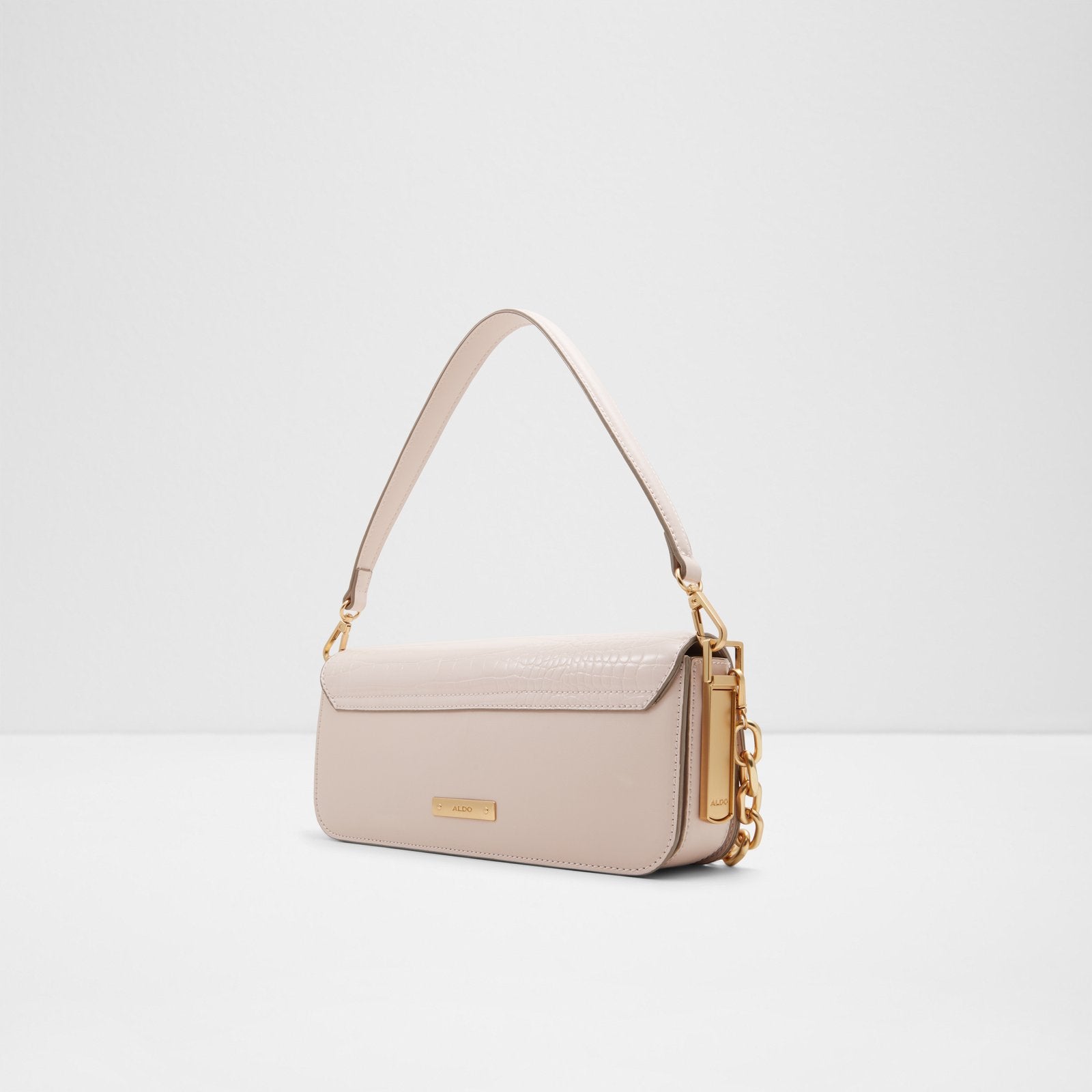 This daring shoulder bag with decorative chain detail is all you need to show up in style.