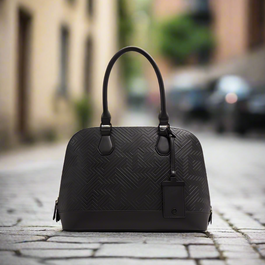 Introducing Rotstuin, the ultimate black handbag for the sophisticated fashionista. The striking embossed pattern exudes elegance while the spacious main compartment and zippered pocket provide practicality. With a customisable look thanks to the extra strap and faux travel tag, this bag is perfect for elevating your style.