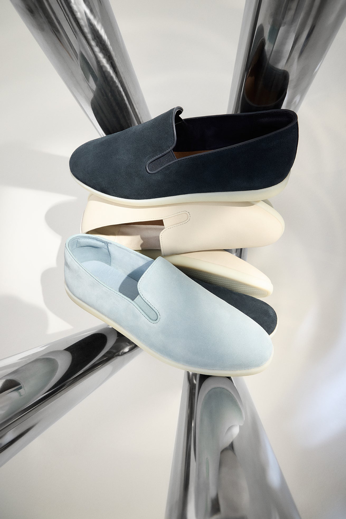 Laid-back and fresh — these pastel blue slip-ons keep it cool with minimal effort and maximum comfort.