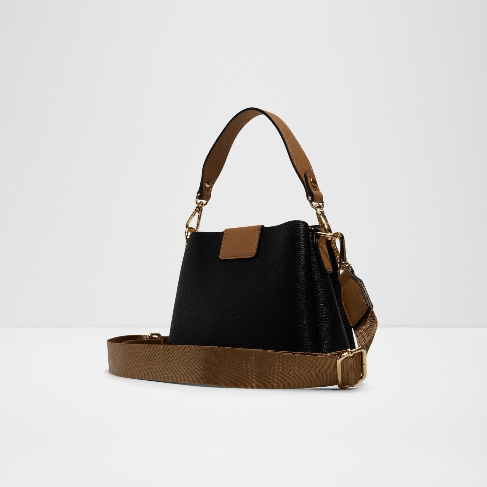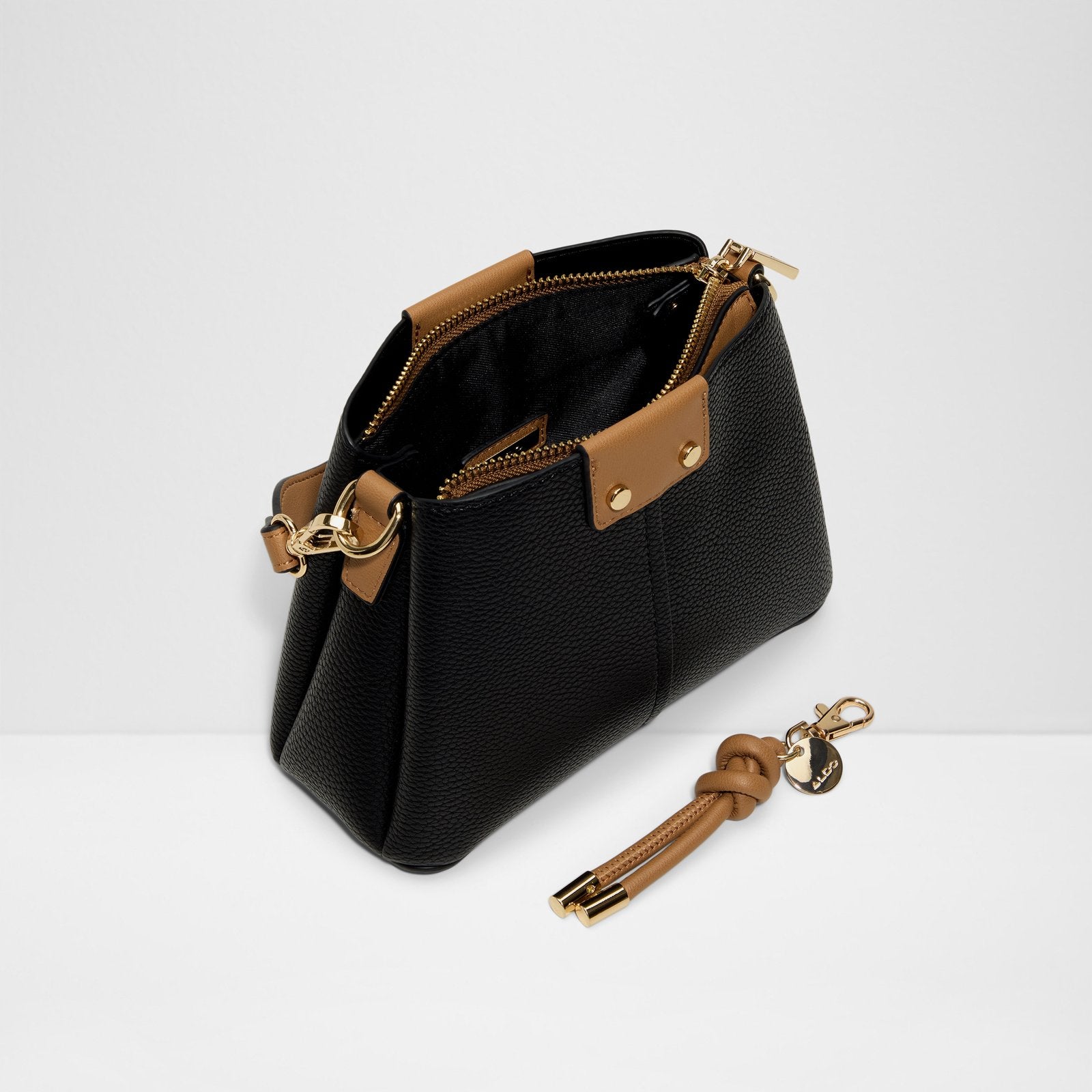 Keep everything in its place with triple compartments and an easy magnetic snap closure. A polished key fob and adjustable strap gives it stylish utility.