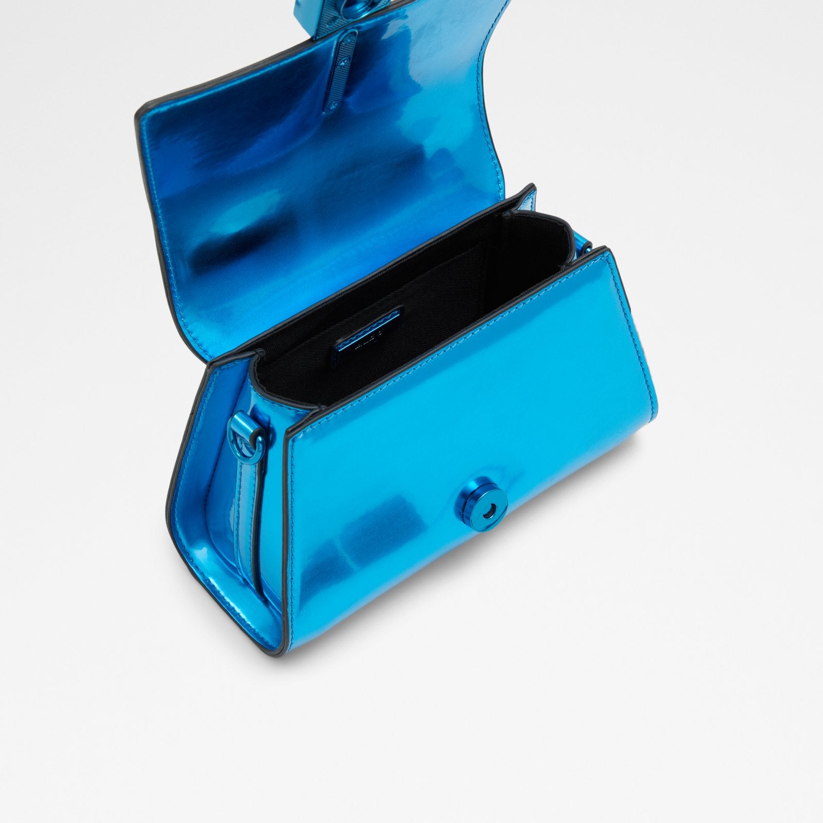 This statement top handle bag with standout metal hardware is the perfect complement to your bodycon dresses and high heels.