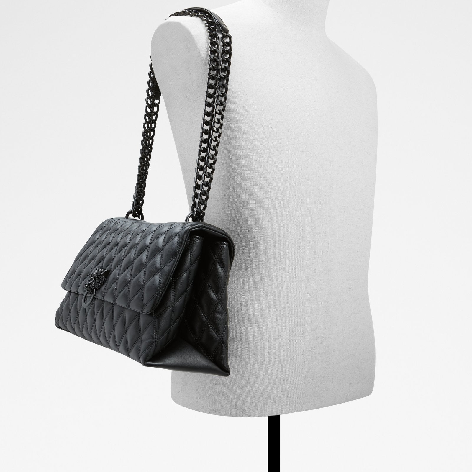 This gorgeous crossbody bag features a standout rhinestone ornament and luxe diamond quilting. Double the straps and wear it as a shoulder bag to change up your look.