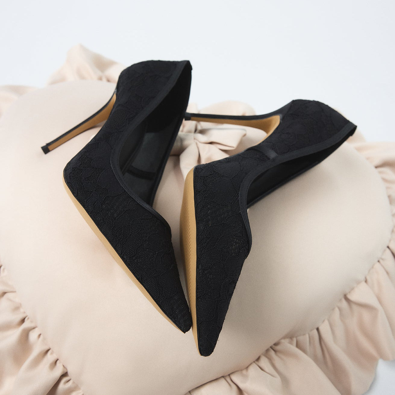 Turn heads this Valentine's Day in the Starrla - a sultry black high heel that commands attention. Delicate lace detailing adds an alluring touch of elegance, while the sleek silhouette flatters every step. Perfect for date night, special occasions, or whenever you want to feel confident and irresistible. Make a statement in a shoe that's as captivating as you are.