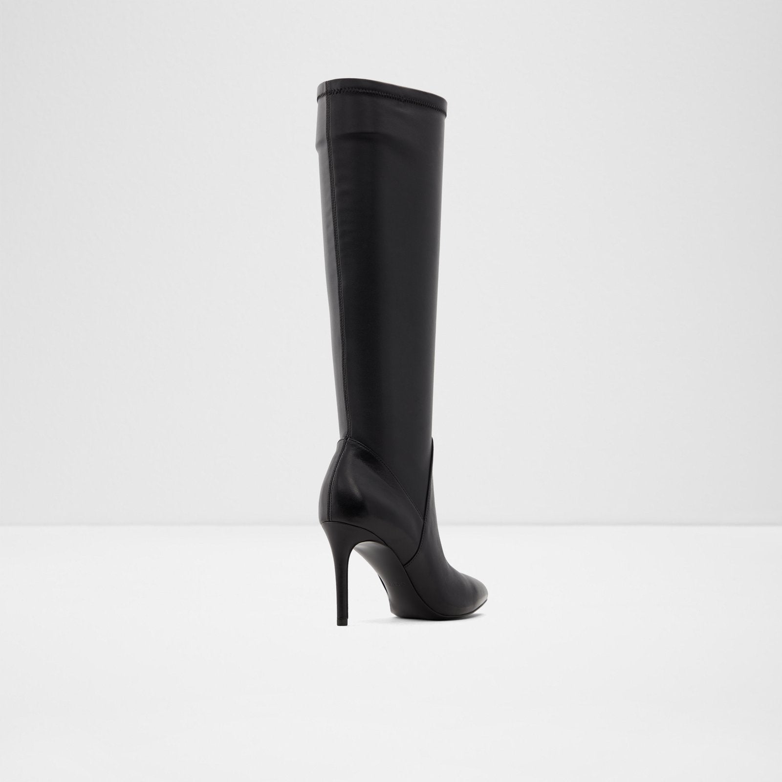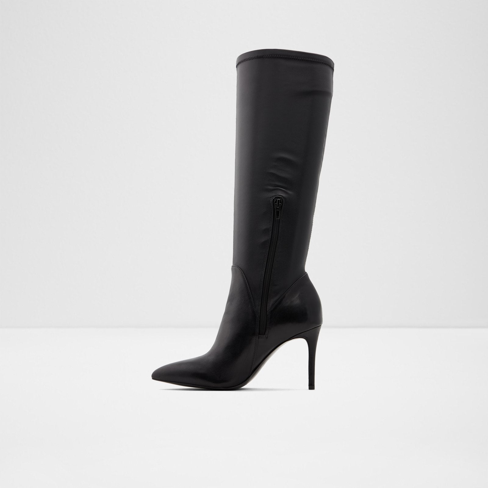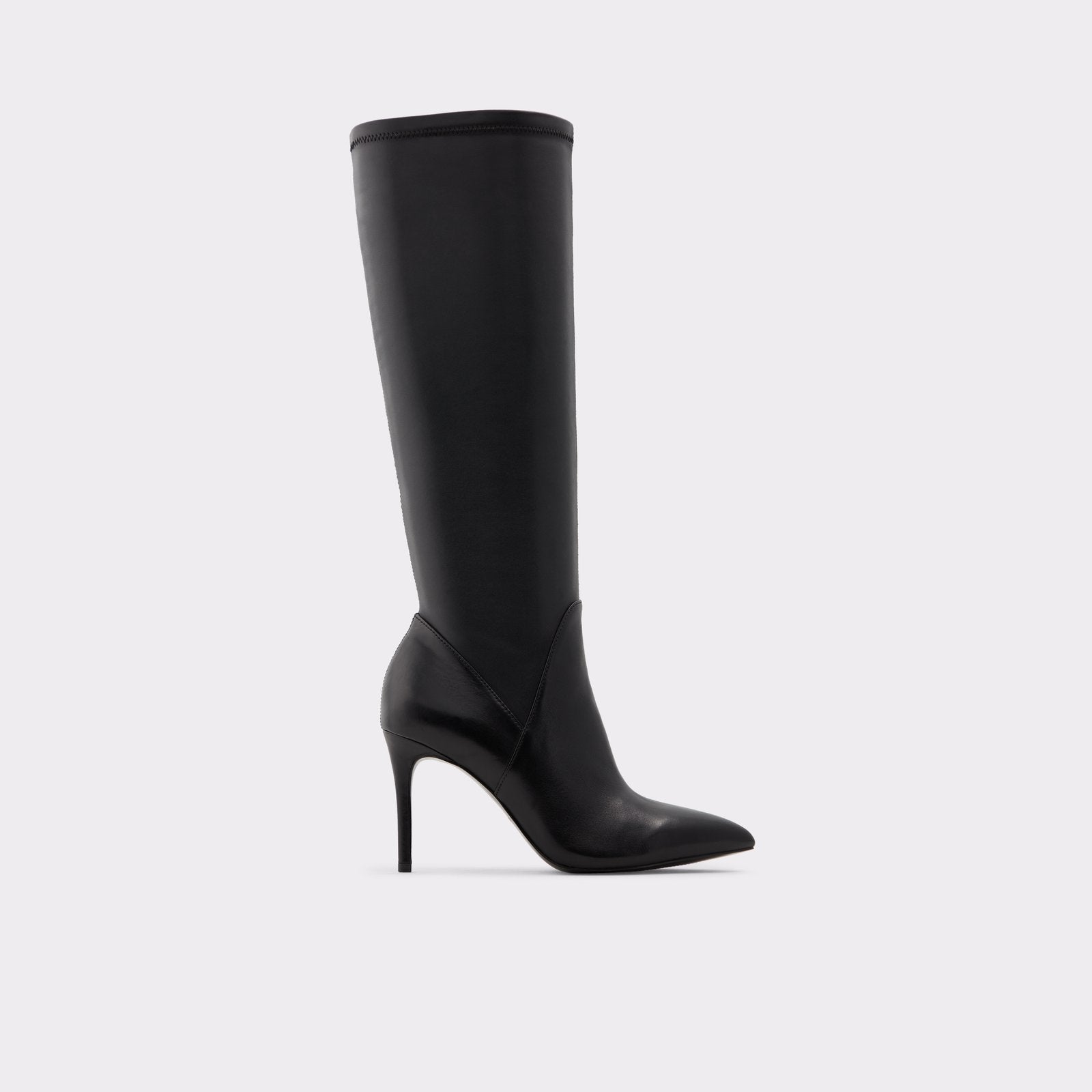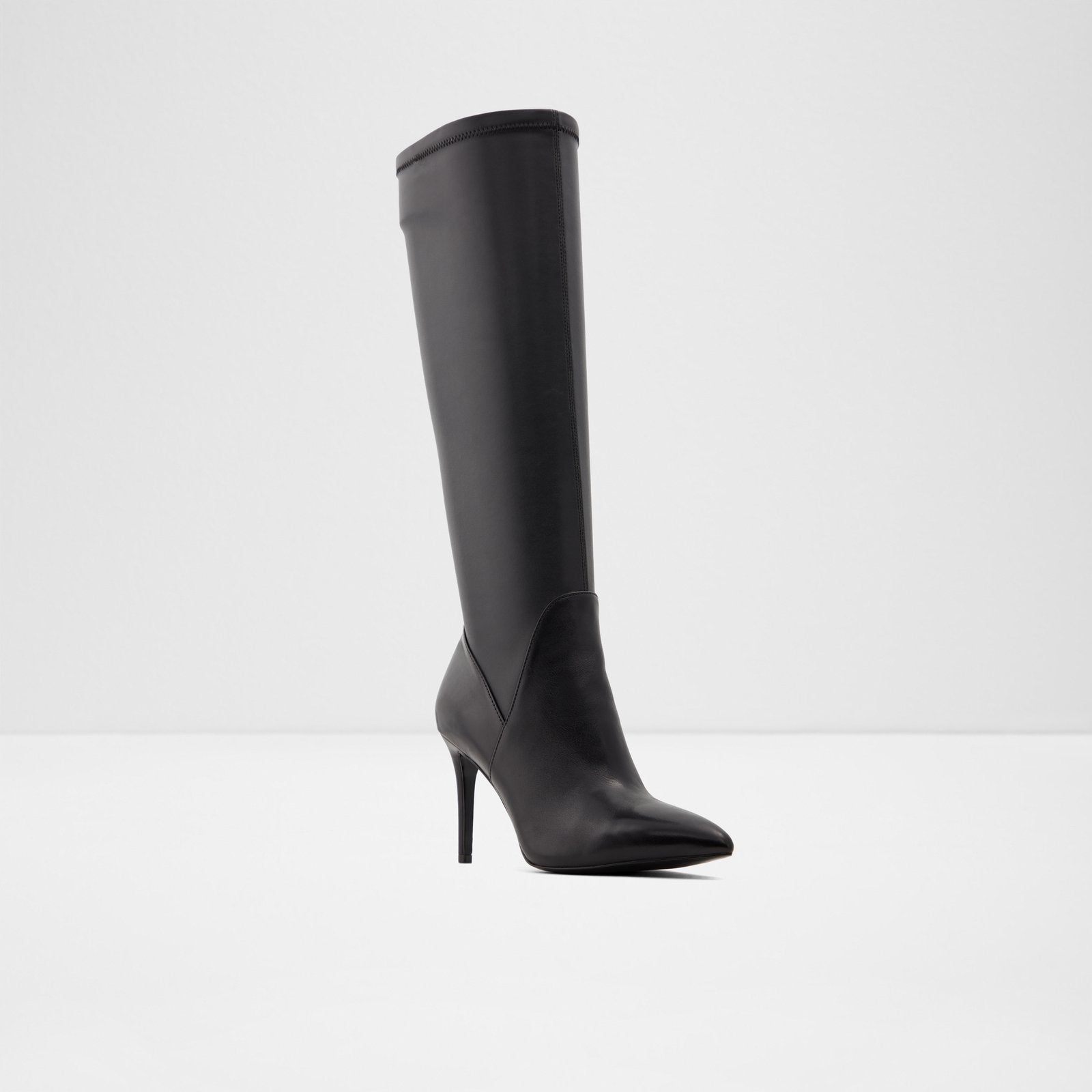 With a stretchy shaft, that fits similar to a stocking, these stiletto knee-high boots slip on with ease.