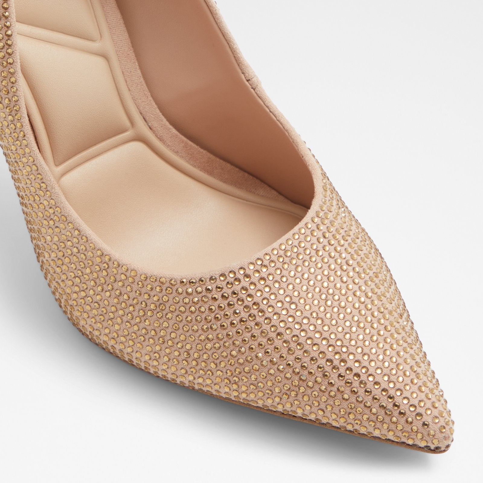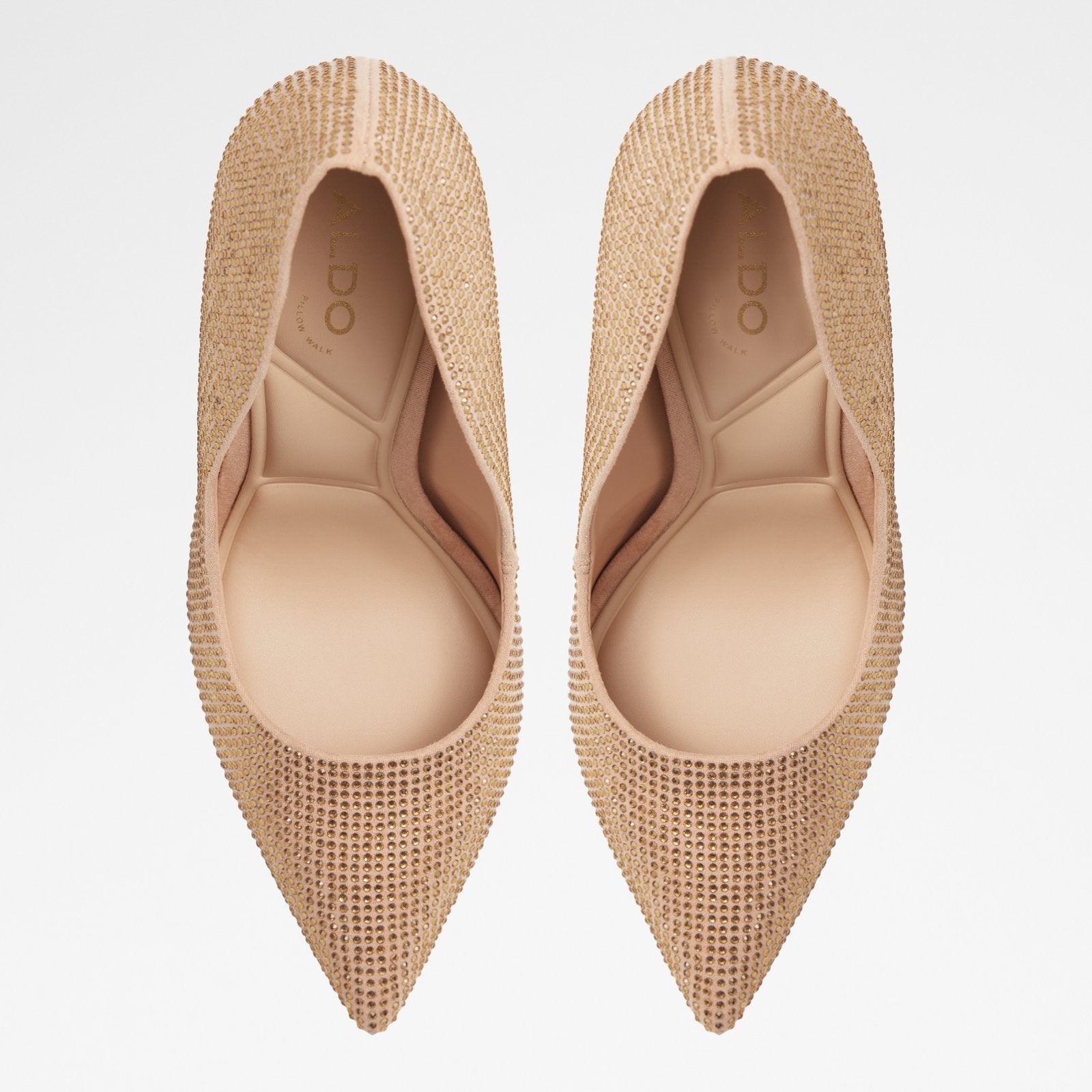 It's beautiful but fits a bit tight due to the padding in the shoe, I usually wear a size 5, but with aldo shoes, I have had to go a half size bigger and still fits a little bit tight. But the shoe is lovely