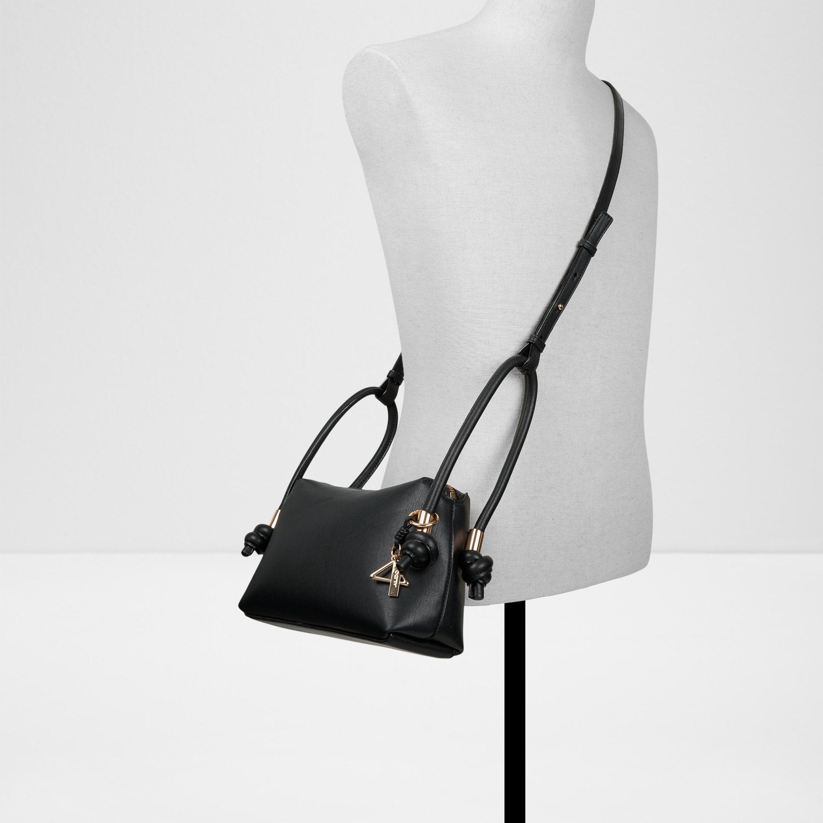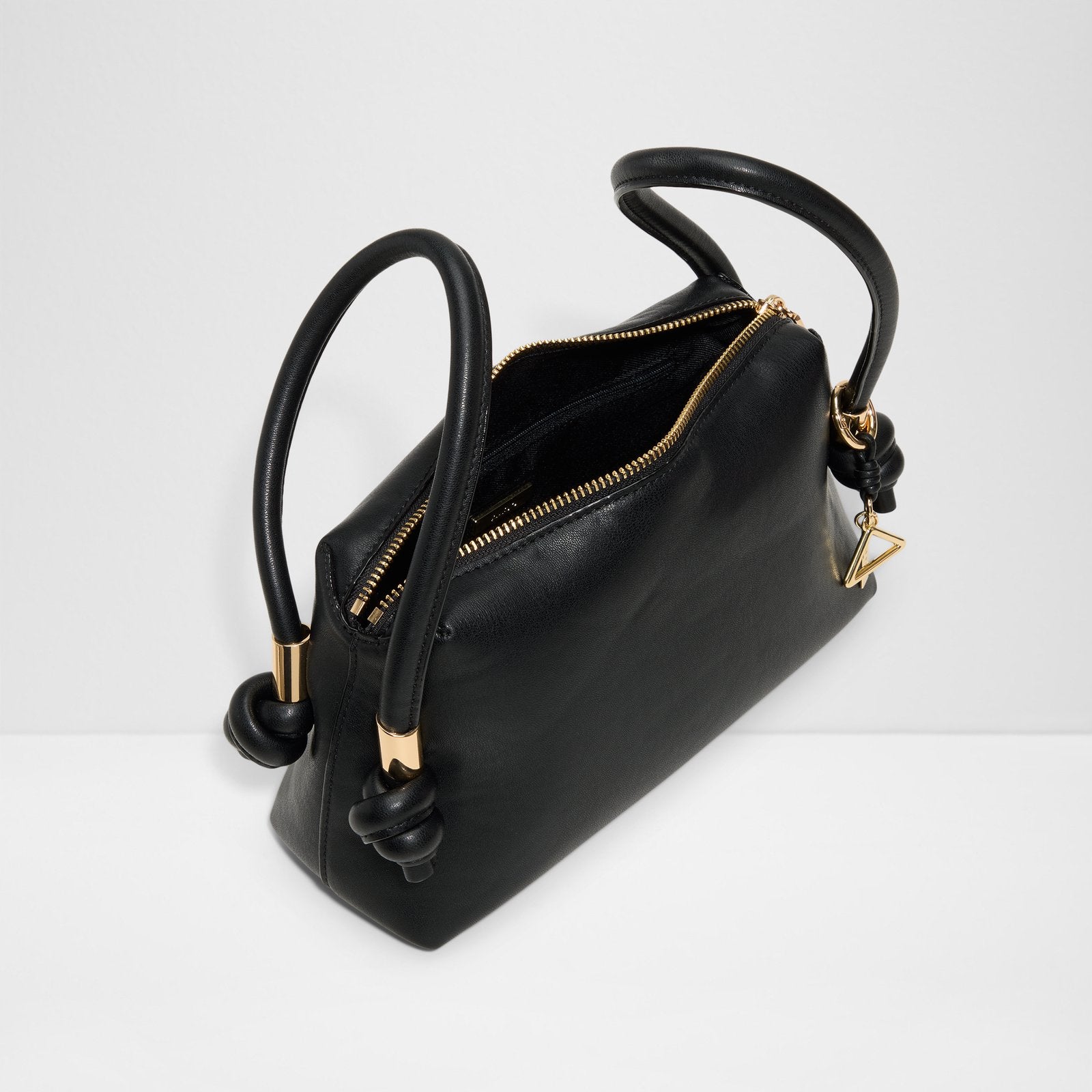 Refreshingly modern, this structured satchel bag features a truly unique sideways knotted handle and chic metal details.