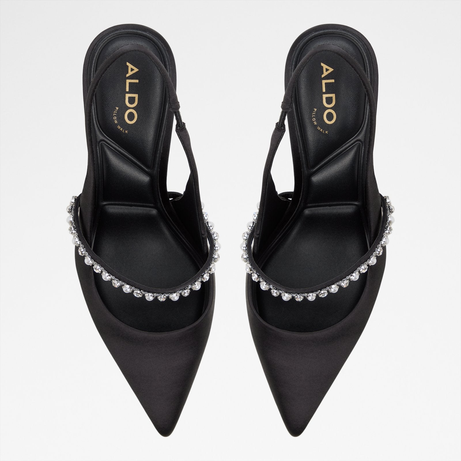 A little sparkle, a sharp toe, and a slingback strap. Rhinestones never looked so good!