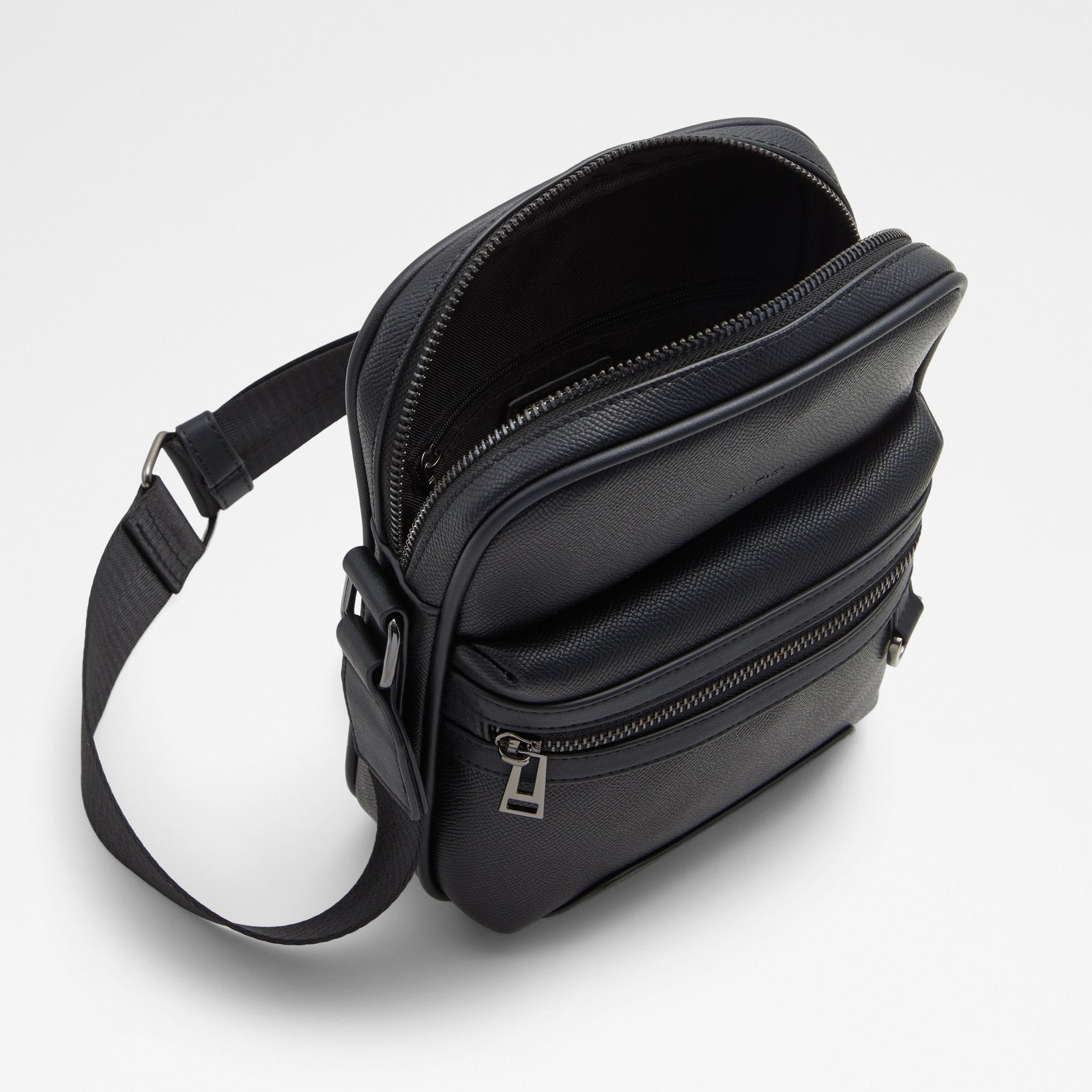 Roomy, sophisticated, and totally your style, our jet-black Weizer crossbody with chic gunmetal hardware is ideal for an active lifestyle.
