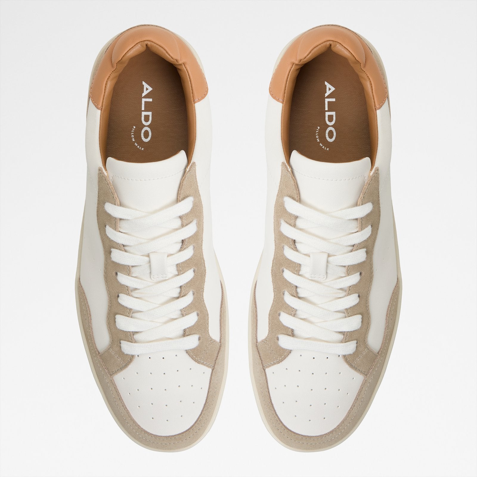 These cream and white colour-block trainers blend modern style with a bold design, offering a fresh and dynamic look for any casual outfit.